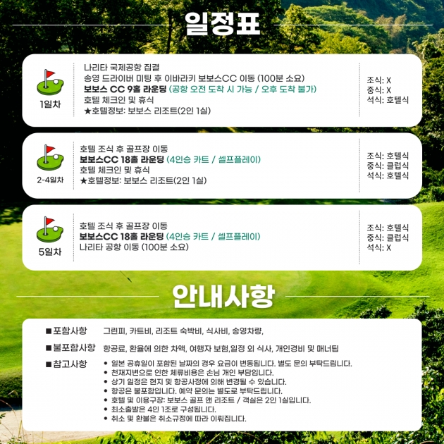 보보스 CC 9홀 라운딩 (공항 오전도착 시 가능 / 오후 도착 시 불가)